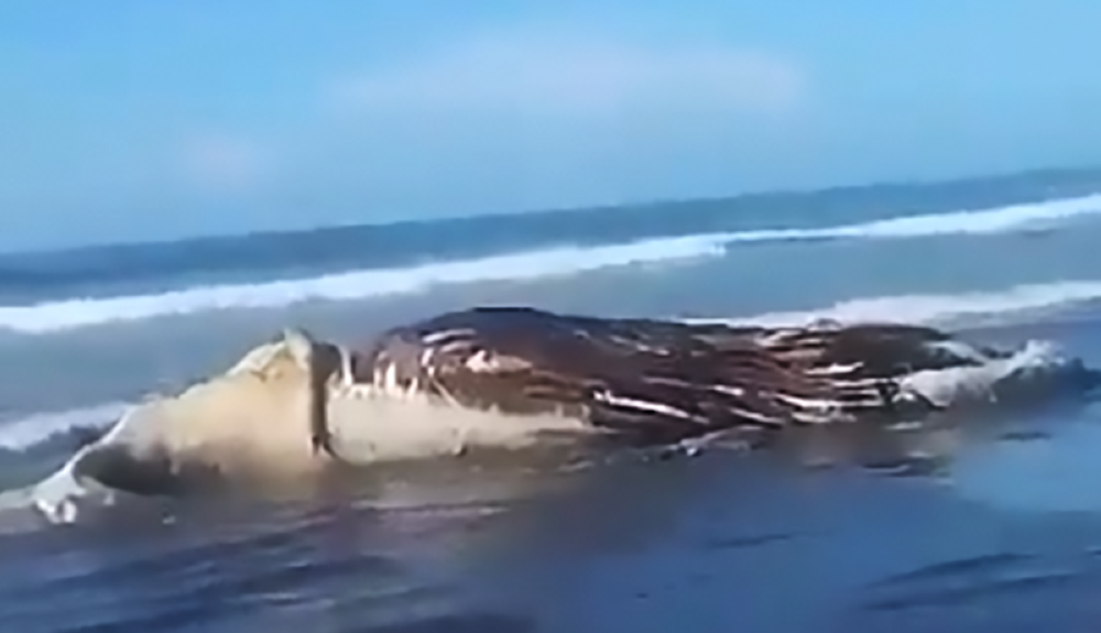 “Pescadores artesanales localizaron un animal muerto, en la playa El Icacal, en el municipio de Intipucá, departamento de La Unión. Presuntamente se trata de una ballena. El animal fue arrojado por la marea”, escribió el Gobierno.