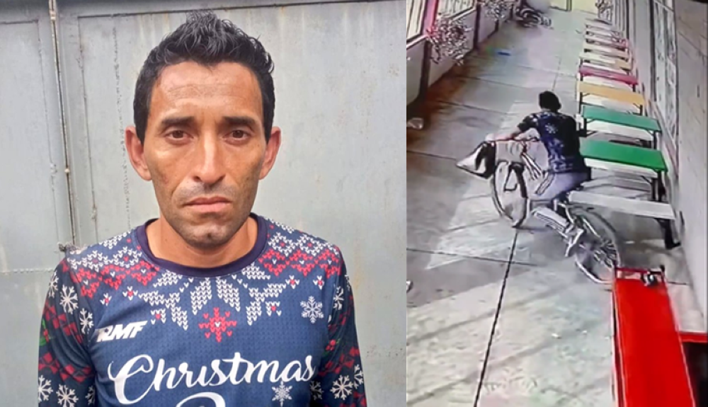 “En cámaras de seguridad quedaron grabados los momentos en que Mario Ernesto Díaz Aguilera, hurtó bicicletas en El Congo y Chalchuapa”, detalló la PNC en su cuenta de X.