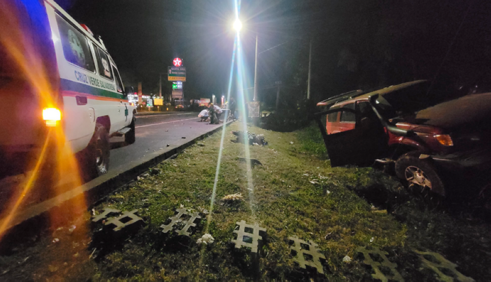 "Socorristas brindaron asistencia a una persona que se transportaba en la motocicleta y a dos ocupantes de la camioneta", reportó Cruz Verde Salvadoreña.