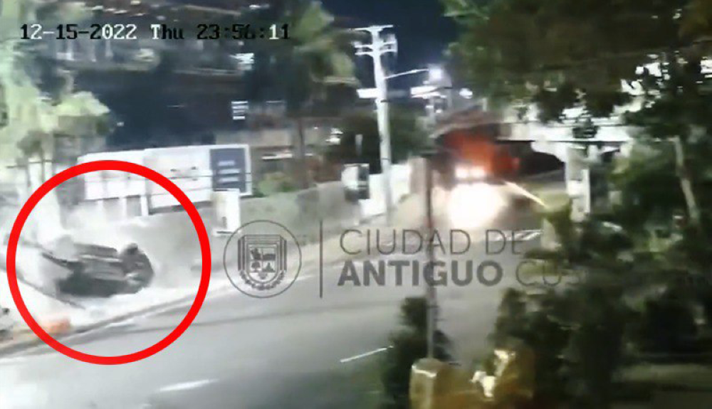 Las cámaras de video vigilancia de Antiguo Cuscatlán captaron el momento exacto donde ocurre un aparatoso accidente de tránsito, el cual ocurrió a altas horas de la noche del jueves frente al Redondel Naciones Unidas.