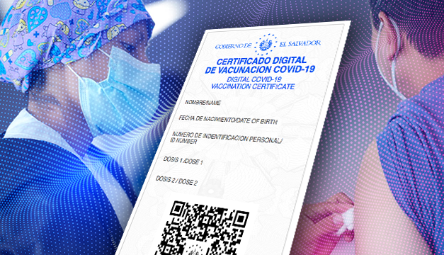 Las 2,625,944 personas que han completado el esquema de vacunación contra el covid-19 en El Salvador ya pueden descargar su “Certificado Digital de Vacunación” con su código QR, a través del portal vacunacioncovid19.gob.sv el cual se hace efectivo de inmediato ingresando el número de DUI y la fecha de nacimiento.
