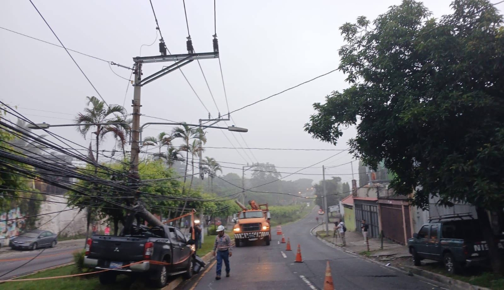 Un automóvil colisionó la noche del domingo sobre un poste del tendido eléctrico en el bulevar Constitución, cerca de la ciudad de Mejicanos, San Salvador.