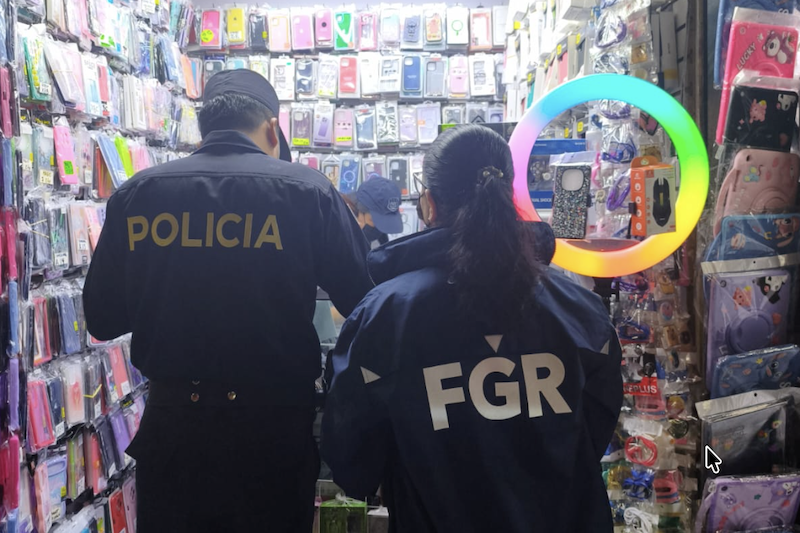 Los registros se ejecutan en el Mercado Hula Hula, el Mercado Sagrado Corazón y en el Centro Histórico de San Salvador. En cada local intervenido, los equipos fiscales y policiales exigen la documentación que respalde la adquisición legal de los artículos en exhibición.
