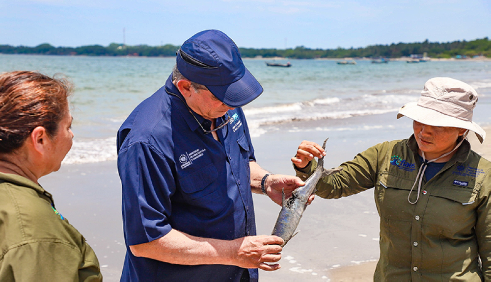 “No toleraremos las malas prácticas que dañen nuestros recursos pesqueros, con los que miles de familias salvadoreñas obtienen el sustento. Las consecuencias de este atentado contra la fauna marina son una multa de 20 salarios mínimos y el decomiso de herramientas”.