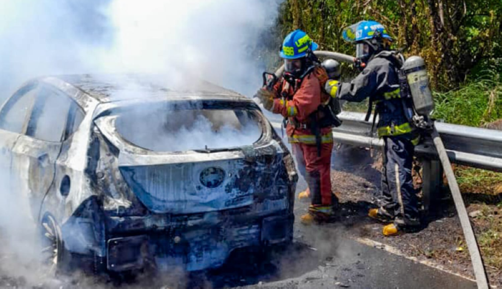 Kilómetro 74, carretera Panamericana, cantón Valle Nuevo, San Vicente. Se efectuaron labores de liquidación y enfriamiento del automóvil. No se reportan personas lesionadas.