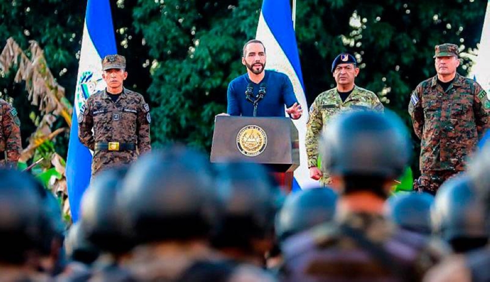 “Si alguien quiere suplirlos de armamento, alimentos, munición, celulares, saldo, chip o lo que utilizan para amedrentar a la población pues ahí ustedes van a interceptarlos, tanto a los delincuentes como a los que colaboren con ellos”, sostuvo Bukele.