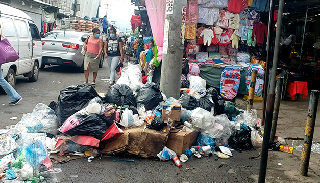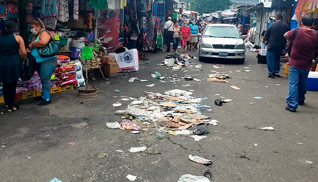 Francisca, es una comerciante de blusas que tiene su puesto sobre la Avenida Monseñor Romero, se refirió a la responsabilidad de cada ciudadano “como también hay público que circula y va comiendo, y bota la basura”, dijo al señalar un promontorio de basura ubicado frente a su negocio.