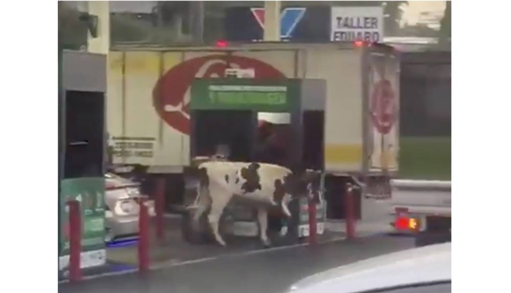 Sin embargo, durante la mañana se captó al bovino rondando en una gasolinera, mientras es perseguida por un agente del Viceministerio de Transporte (VMT).