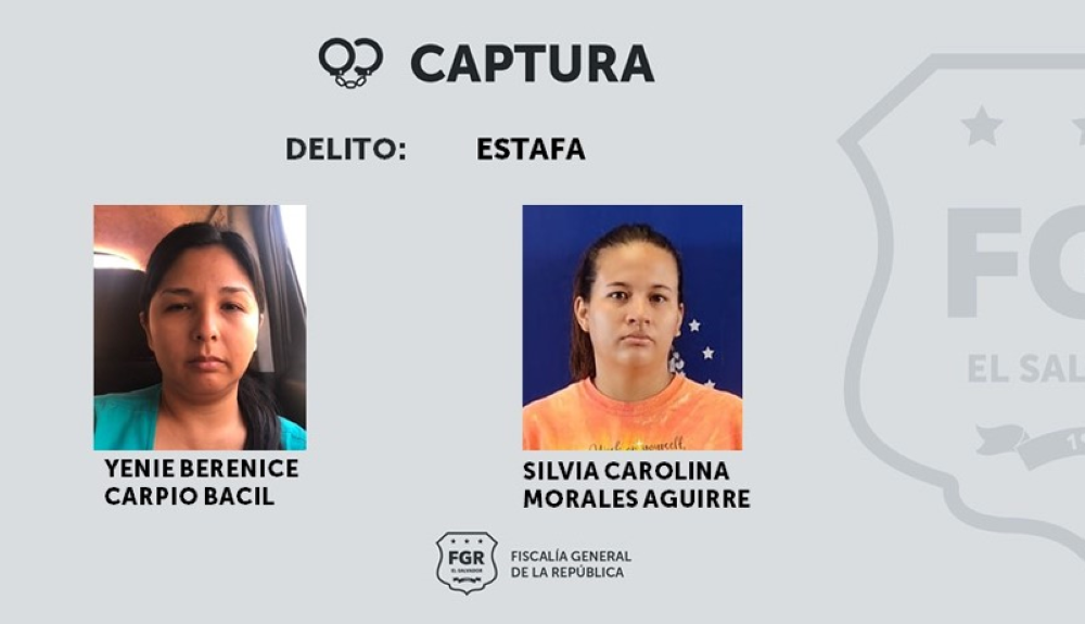 #Captura I La @FGR_SV ordenó las detenciones de Silvia Carolina Morales Aguirre y Yenie Berenice Carpio Bacil, consideradas estafadoras en serie.