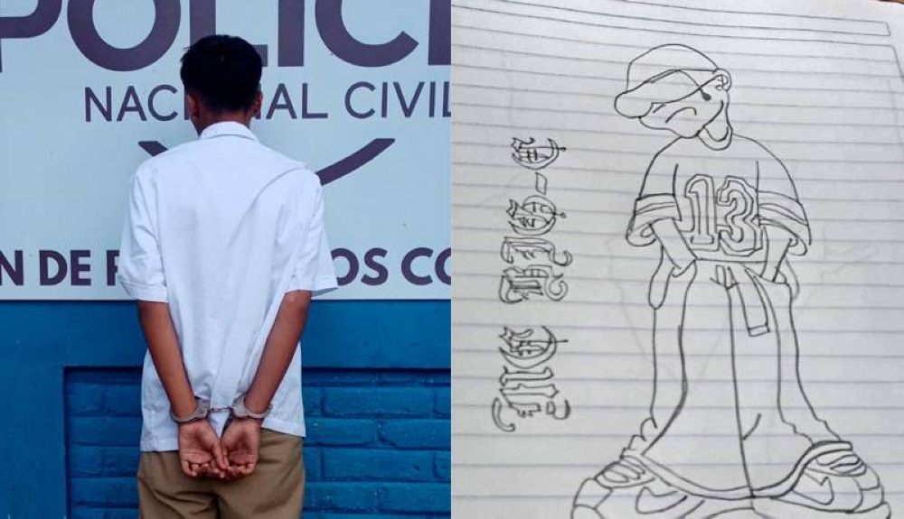 La Policía Nacional Civil (PNC) informó de la captura de un estudiante en el distrito de Soyapango, municipio de San Salvador Este, a quien se le encontraron dibujos en un cuaderno alusivos a la pandilla Mara Salvatrucha (MS13).