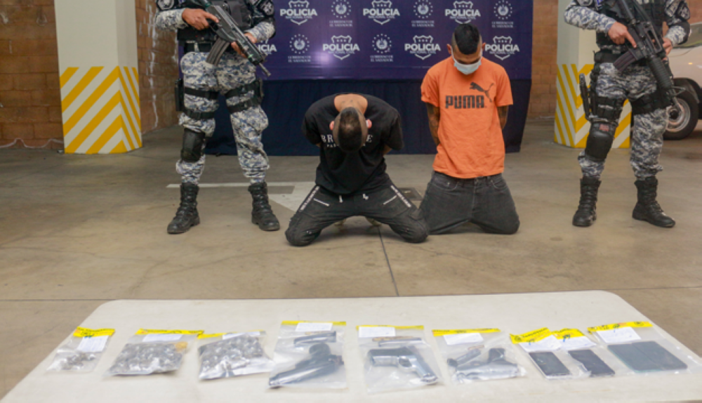 Los sujetos fueron detenidos junto a otro identificado como Luis Orlando Mendoza y en el procedimiento les incautaron 227 porciones de marihuana y tres armas de fuego, detalló el director de la PNC, Mauricio Arriaza Chicas.