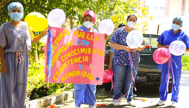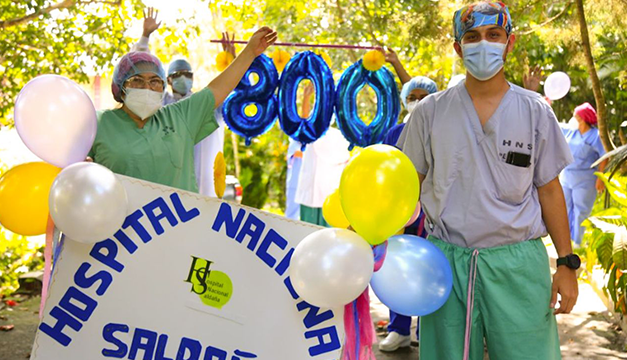 En la batalla contra el covid-19 los ánimos aminoran frente a un virus desconocido y altamente contagioso, pero este miércoles personal médico y de enfermería del Hospital Nacional Dr. José Antonio Saldaña en los Planes de Renderos, al sur de la capital, tenía 800 motivos para celebrar, ese era el número de pacientes recuperados de este centro médico ha logrado salvar desde que se presentaron los primeros contagios.