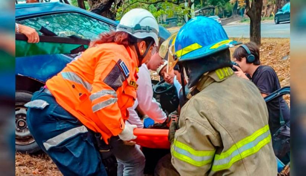 Elementos del Cuerpo de Bomberos y Cruz Verde Salvadoreña intervinieron para liberar a los tres atrapados, que fueron trasladados a un centro asistencial.Apoyamos en las labores de un accidente de tránsito donde tres personas resultaron atrapadas en el vehículo que se conducían sobre el km 11, carretera a Comalapa, San Salvador. pic.twitter.com/Y1QsvmgpEX