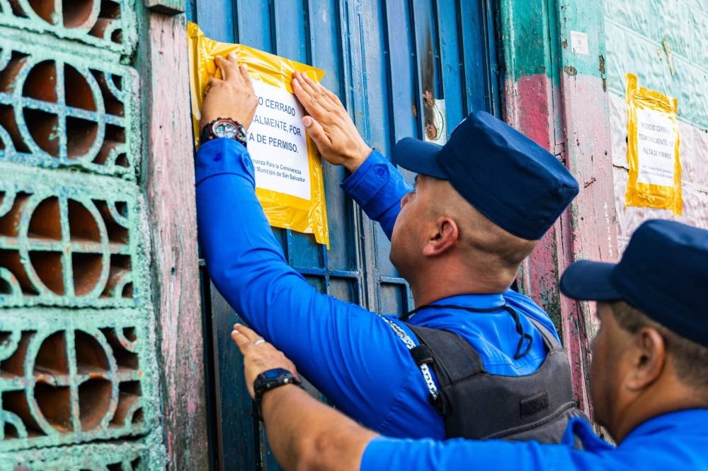 “Negocio cerrado temporalmente por falta de permisos”, dice parte de los avisos pegados por agentes del CAM San Salvador.