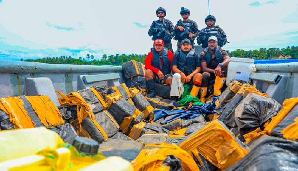 Además de la droga, también fueron presentados dos ecuatorianos y un colombiano, detenidos durante la incautación que fue efectuada a 630 millas náuticas al suroeste de la Bocana El Cordoncillo, Estero de Jaltepeque en La Paz.