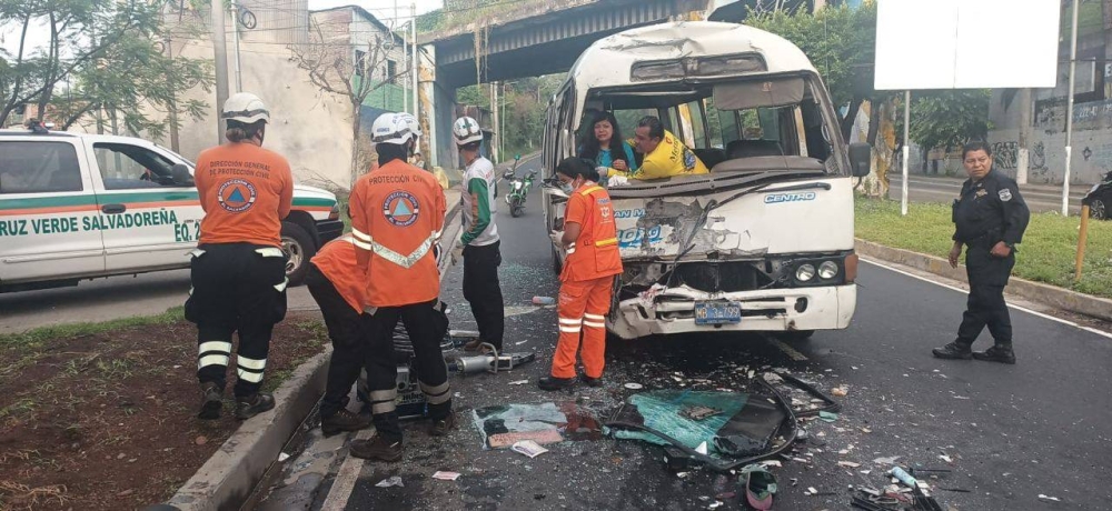 En el accidente que tuvo lugar a la altura del paso desnivel del bulevar Venezuela, una mujer que viaja en la parte delantera de uno de los microbuses quedó atrapada entre los hierros retorcidos y atendida por socorristas.