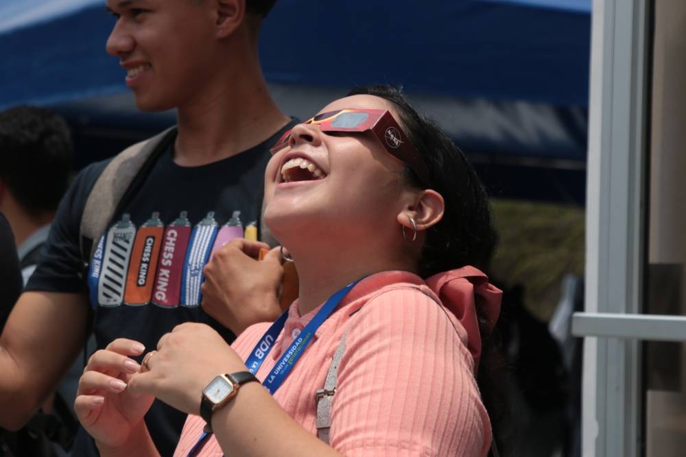 De forma segura, estudiantes del Centro Escolar Católico San Sebastián de Cojutepeque observaron el eclipse parcial de Sol desde el Observatorio Micro Macro de la Universidad Don Bosco /UDB), que este lunes abrió sus puertas de manera gratuita para quienes deseaban disfrutar del fenómeno.