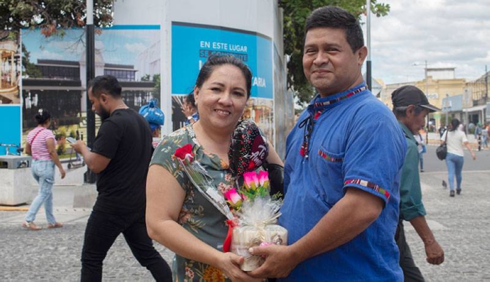 Una pareja en el centro de San Salvador, con su regalo de San Valentín. / Lisbeth Ayala