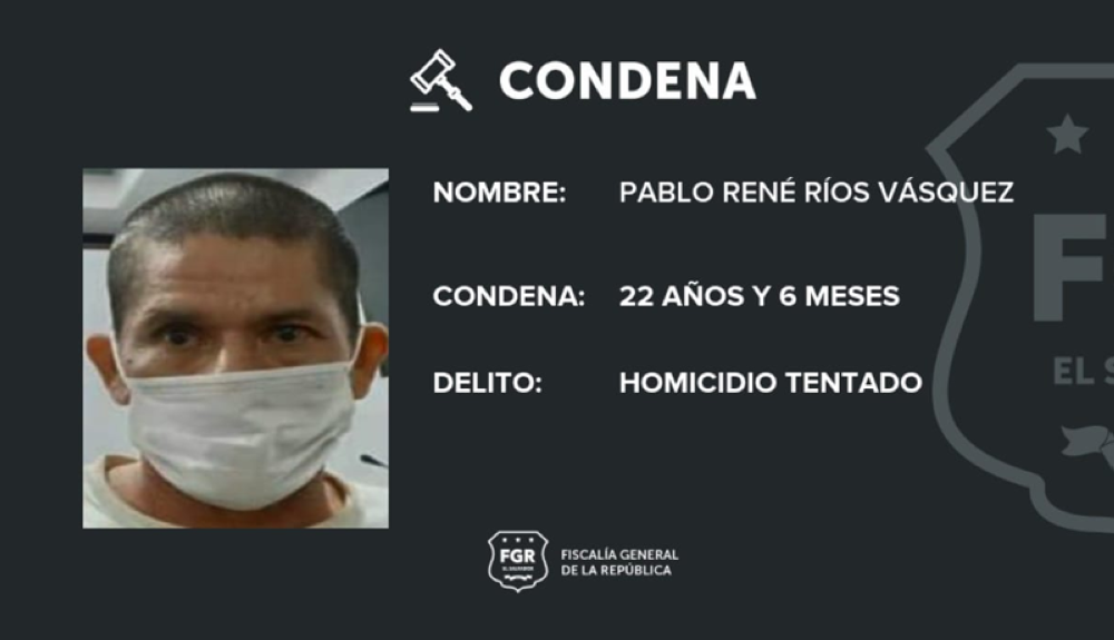 La Fiscalía General de la República (FGR) informó, este lunes, que el Tribunal Primero de Sentencia de Santa Tecla condenó a Pablo René Ríos Vásquez a 22 años y seis meses de cárcel por haber intentado asesinar a su hermana y cuñado con un corvo el 26 de marzo de 2022, en Ciudad Arce, La Libertad.
