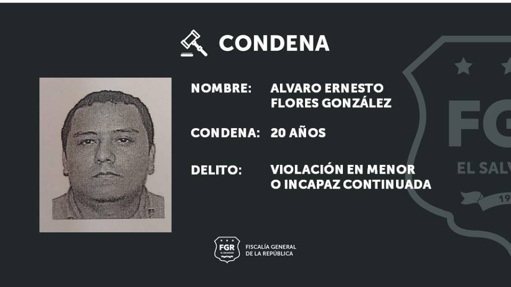 El Tribunal Primero de Sentencia de Sonsonate valoró las pruebas presentadas por la Fiscalía General de la República (FGR) y le impuso una pena de 20 años de cárcel por el delito de violación en menor o incapaz.