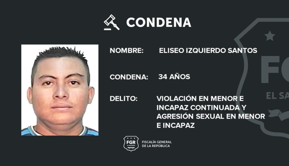Eliseo Izquierdo Santos fue condenado este jueves, a 34 años de cárcel, por abusar sexualmente de una niña de 9 años en un centro educativo de Tejutla, en el departamento de Chalatenango.
