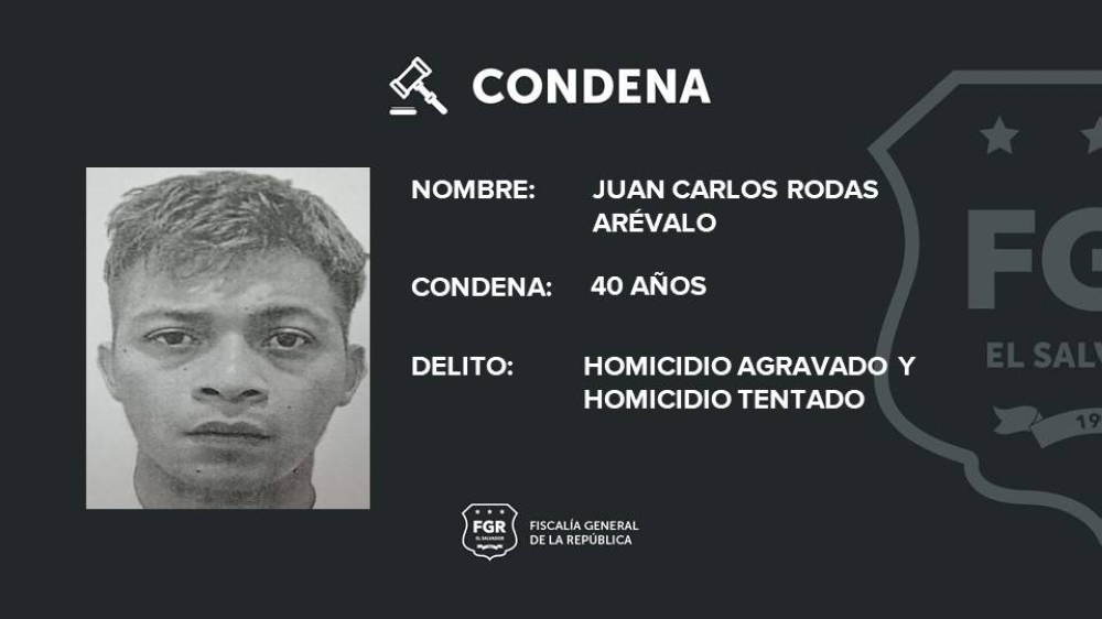 El Tribunal de Sentencia de Chalatenango condenó a 40 años de cárcel a Juan Carlos Rodas Arévalo por el asesinato de Pablo Alexander Hernández y por lesionar a dos víctimas más en el departamento de Chalatenango.