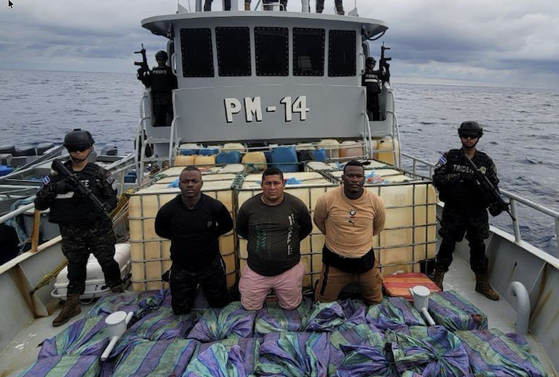La lancha fue interceptada a 760 millas náuticas al sur de la bocana El Cordoncillo, en aguas del Pacífico salvadoreño.