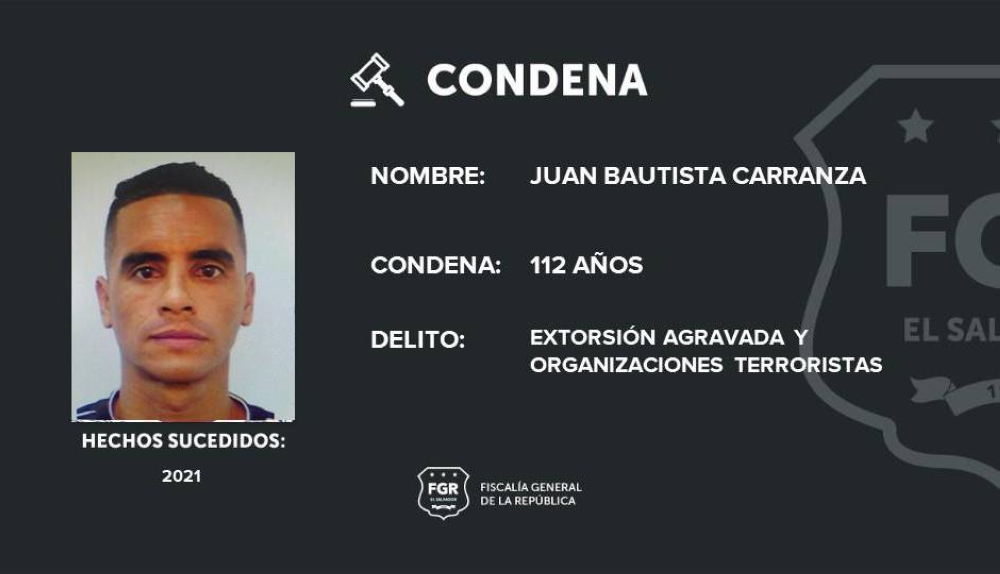 La mayor condena la recibió Juan Bautista Carranza, sentenciado a pasar 112 años de prisión por extorsión agravada y organizaciones terroristas.