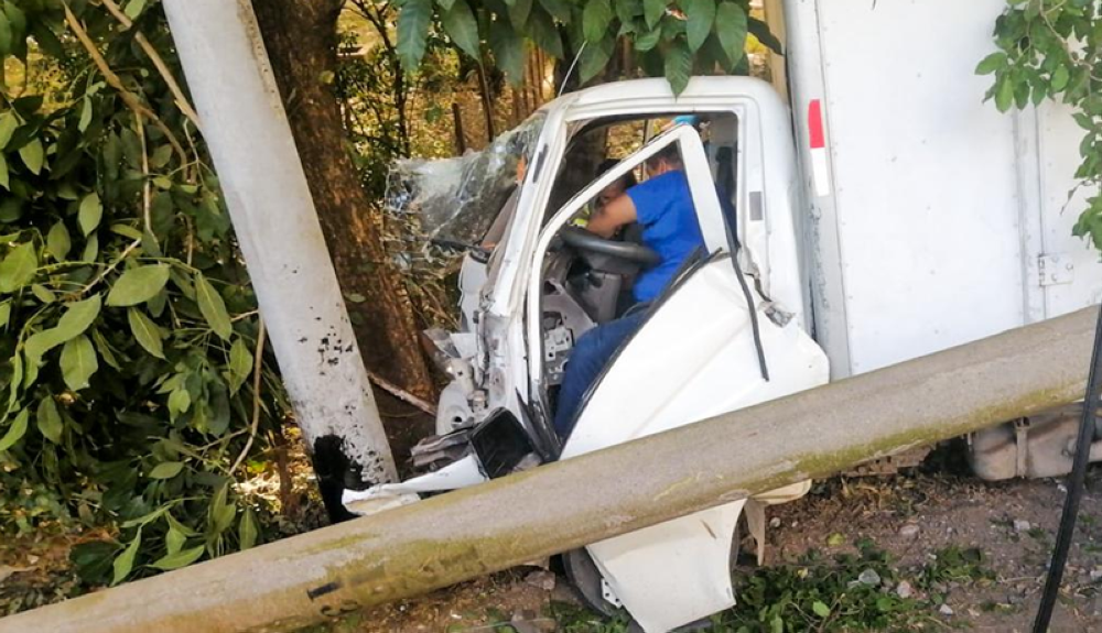 El conductor de un camión perdió el control, impactando contra un poste, quedando atrapado entre los hierros.