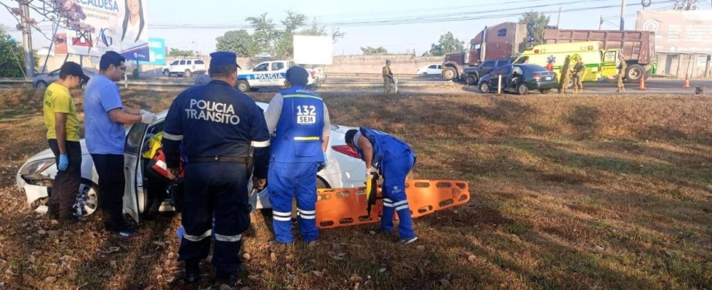 Un accidente de tránsito, entre dos vehículos tipo sedán, se registró en el km 35 de la carretera Panamericana, jurisdicción de San Juan Opico, La Libertad, según reportes de la Policía Nacional Civil.