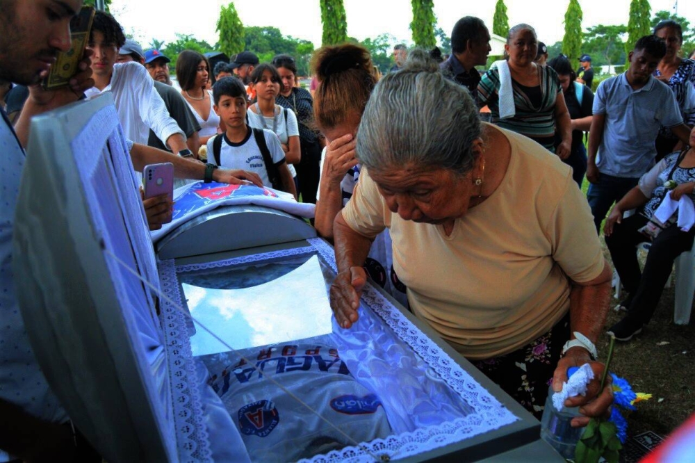 La abuela de Kevin Linares se despide de su nieto antes de ser enterrado en el cementerio la bermeja. Foto Lisbeth Ayala.
