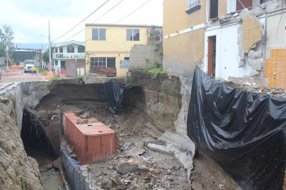 El director de Protección Civil, Luis Amaya, informó que declararon inhabitable la residencial Brisas de San Francisco, ubicada sobre la avenida Las Amapolas, en San Salvador, luego que las lluvias del jueves abrieran una quinta cárcava sobre la bóveda del arenal Montserrat.