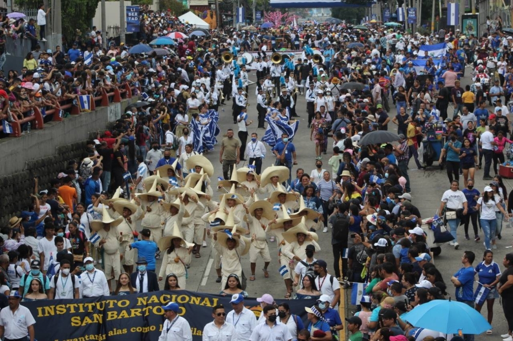 Además hubo participación de la Fuerza Aérea, Fuerza Naval, la Policía Nacional Civil, Ejército, el Cuerpo de Bomberos y en total 22 bandas de paz de centros educativos junto a cachiporras y bailarinas.