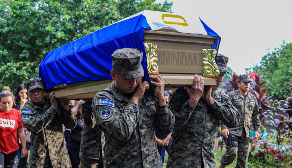 El ministro de Defensa, René Merino Monroy, compartió en su cuenta de Twitter fotografías de los funerales a los cinco infantes de marina que murieron soterrados el pasado lunes tras un alud en Comasagua, La Libertad.