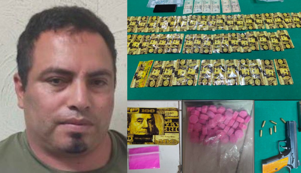 Durante el procedimiento le incautaron 50 pastillas de éxtasis, una porción mediana de éxtasis, cuatro porciones grandes de cocaína, 50 sobres con droga, un arma de fuego, municiones, un teléfono y el vehículo en el que se trasladaba.