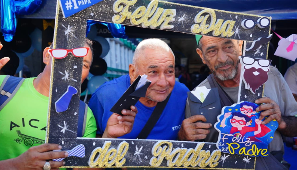 En la víspera del Día del Padre, repartimos un rico almuerzo y compartimos un postre. Además, todo el ambiente de fiesta y música para ellos.