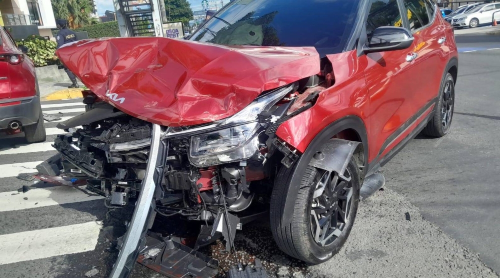 La Policía Nacional Civil (PNC) reportó un aparatoso accidente de tránsito en el cual dos personas resultaron lesionadas luego de que dos vehículos particulares chocaran en la intersección de la 87 avenida Norte y el Paseo General Escalón, San Salvador.