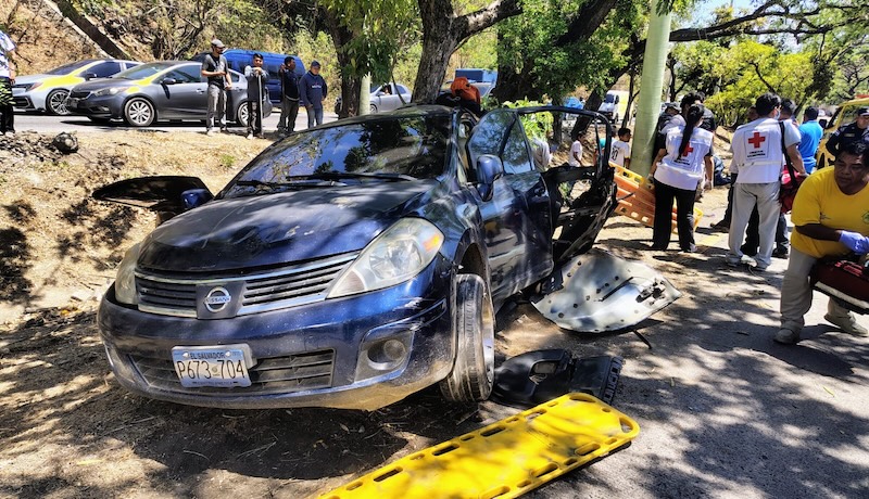 El conductor del automóvil con placas P 673-704 resultó lesionado, mientras que su acompañante, Teresa de Jesús Corea, murió en el hospital Zaldaña.