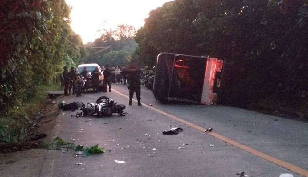 El accidente ocurrió en el kilómetro 22 de dicha carretera, en la que personas que se transportaban en una motocicleta chocaron con un camión.