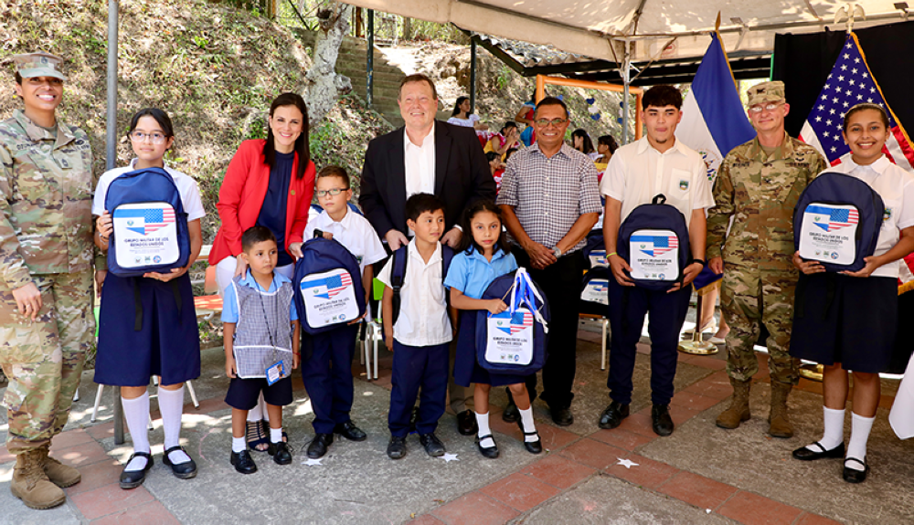La Embajada de Estados Unidos en El Salvador entregó, este jueves, un donativo de equipo educativo y kits escolares a personal del Centro Escolar La Pedrera, ubicado en el predio de CONAPINA en la Colonia Costa Rica, en San Salvador.