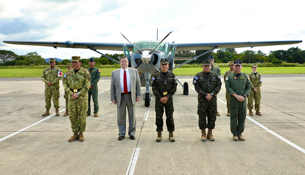 “Personalmente yo he volado en Caravan por todo Colombia y en las partes más remotas de África. Me gusta pensar que mañana y en 20 años más esta avión Caravan va estar al servicio del pueblo salvadoreño en manos de la Fuerza Aérea Salvadoreña, realizando operaciones humanitarias en casos de desastres naturales, evacuaciones médicas y transporte de personal y carga, y monitoreando las fronteras terrestres y marítimas de El Salvador”, expresó el embajador de EEUU, William Duncan, durante la entrega del monomotor.