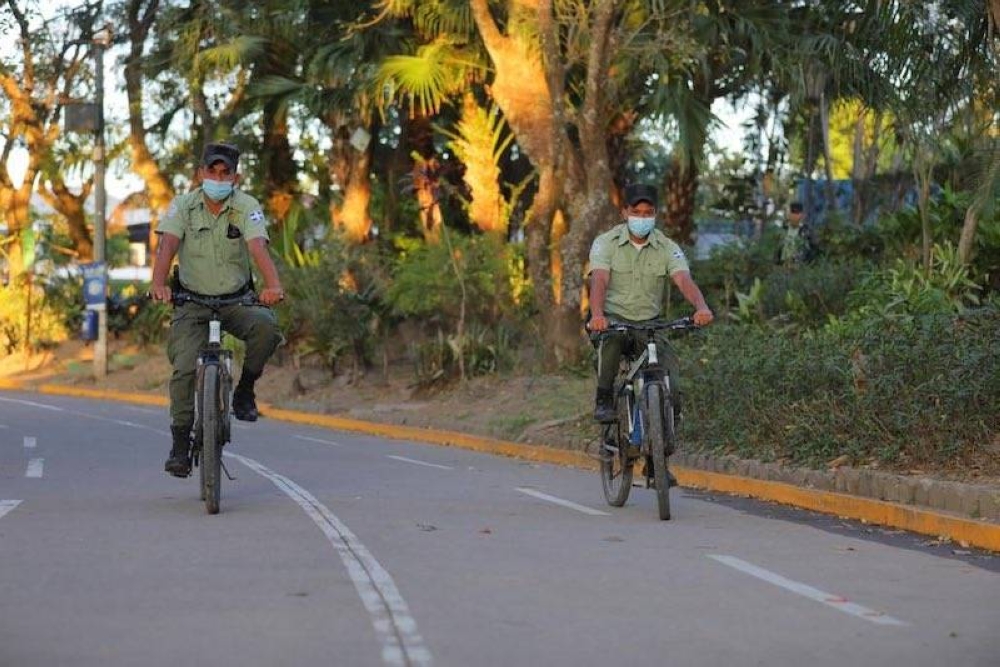 Nuestros compañeros del @CAMdeSantaTecla están distribuidos en parques, plazas y los distritos para velar por la seguridad de los que viven o visitan Santa Tecla.