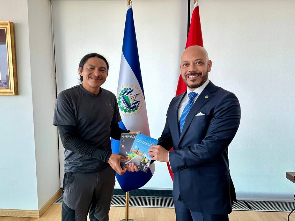 “Recibimos en nuestra representación diplomática al salvadoreño José Gabriel Ruiz, conocido como Chepe Ruiz, quien se ha propuesto recorrer el mundo en bicicleta en 800 días”, publicó la embajada salvadoreña en Turquía junto a fotografías de la reunión del embajador con Chepe Ruíz.