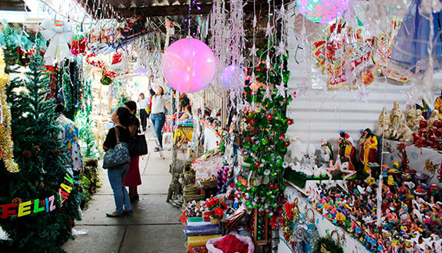 Diferentes melodías navideñas se combinan con el sonido de cumbias; la frase: “Aquí le tenemos detalles de todos los tamaños y a buen precio, pregunte”, suena al ritmo de las canciones al transitar por los puestos blancos de lámina y madera a un costado de la calle Ruben Darío.