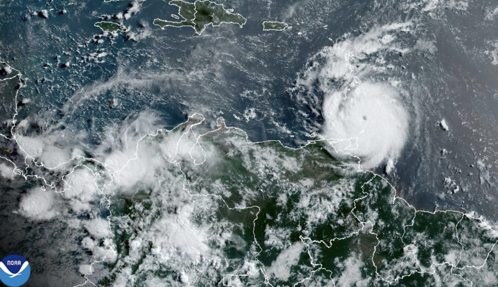 La categoría 4 de Beryl está pasando frente a las costas de Venezuela este lunes. / NHC.
