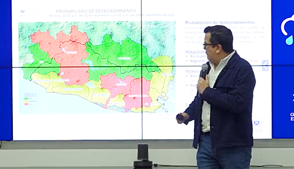 E insistió que estas condicines climáticas agravan las posibilidades de desbordamientos en el río Grande de San Miguel, la cuenca alta y baja del río Lempa “y en los ríos Goascorán, Grande de Sonsonate y Jiboa”.