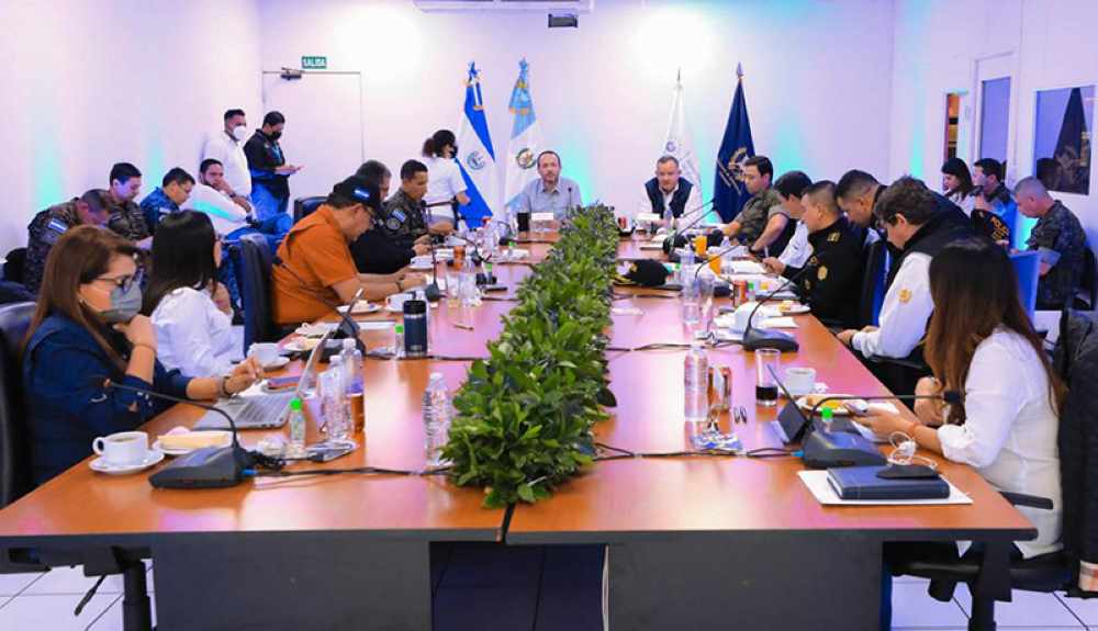 En la reunión, celebrada en la frontera La Hachadura, Ahuachapán, participan el ministro de Gobernación de Guatemala, David Napoleón Barrientos, junto al Ministro de la Defensa Henry Reyes Chigua, el primer viceministro de Seguridad, Carlos Enrique Franco Urzúa; el director general de la Policía Nacional Civil Héctor Hernández; y el director de Migración Stuard Rodríguez.