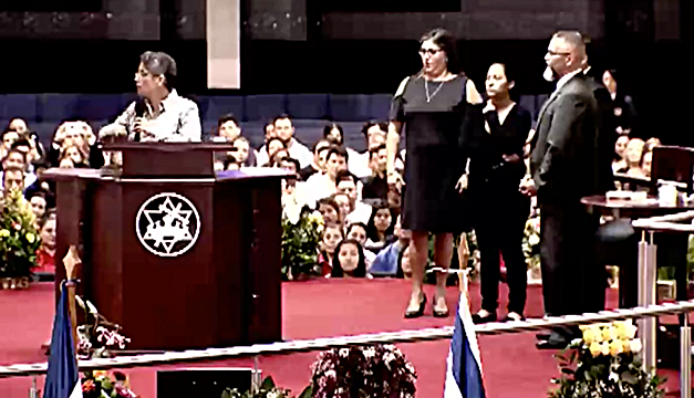 “El pueblo salvadoreño está agradecido por la guía espiritual del pastor y sus acciones filantrópicas”, expresó David Munguía Payés, ministro de Defensa, en una breve intervención desde el púlpito del TBB, a donde llegó para ofrecer sus condolencias.