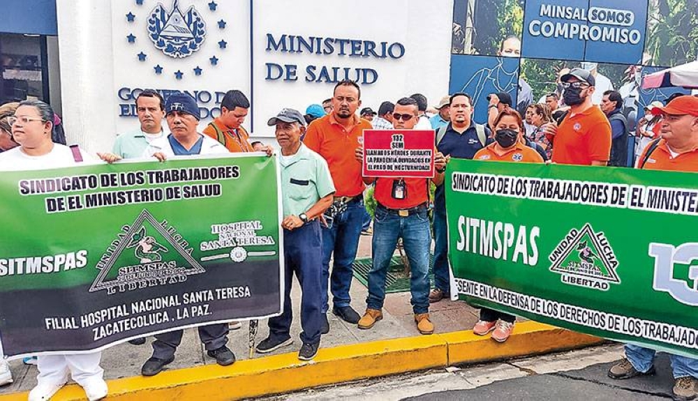 Empleados del área de salud aglutinados en diferentes sindicatos se concentraron la tarde de ayer frente al Ministerio de Salud (Minsal), ubicado en la calle Arce de San Salvador, para exigir el pago de nocturnidades y vacaciones.
