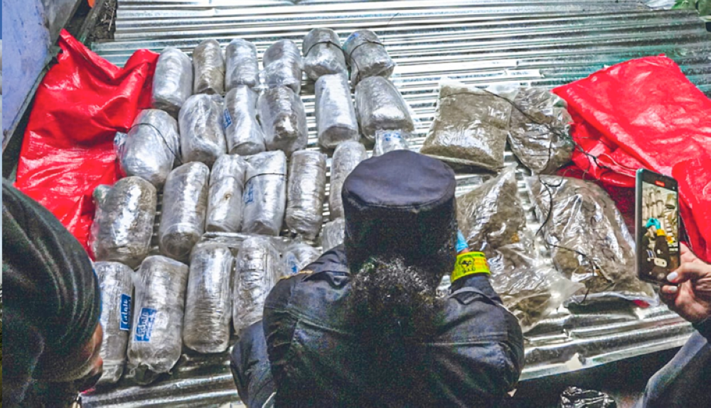 #Antinarcóticos | Hasta el momento se han encontrado cuatro sacos grandes con material vegetal, positivos a marihuana.